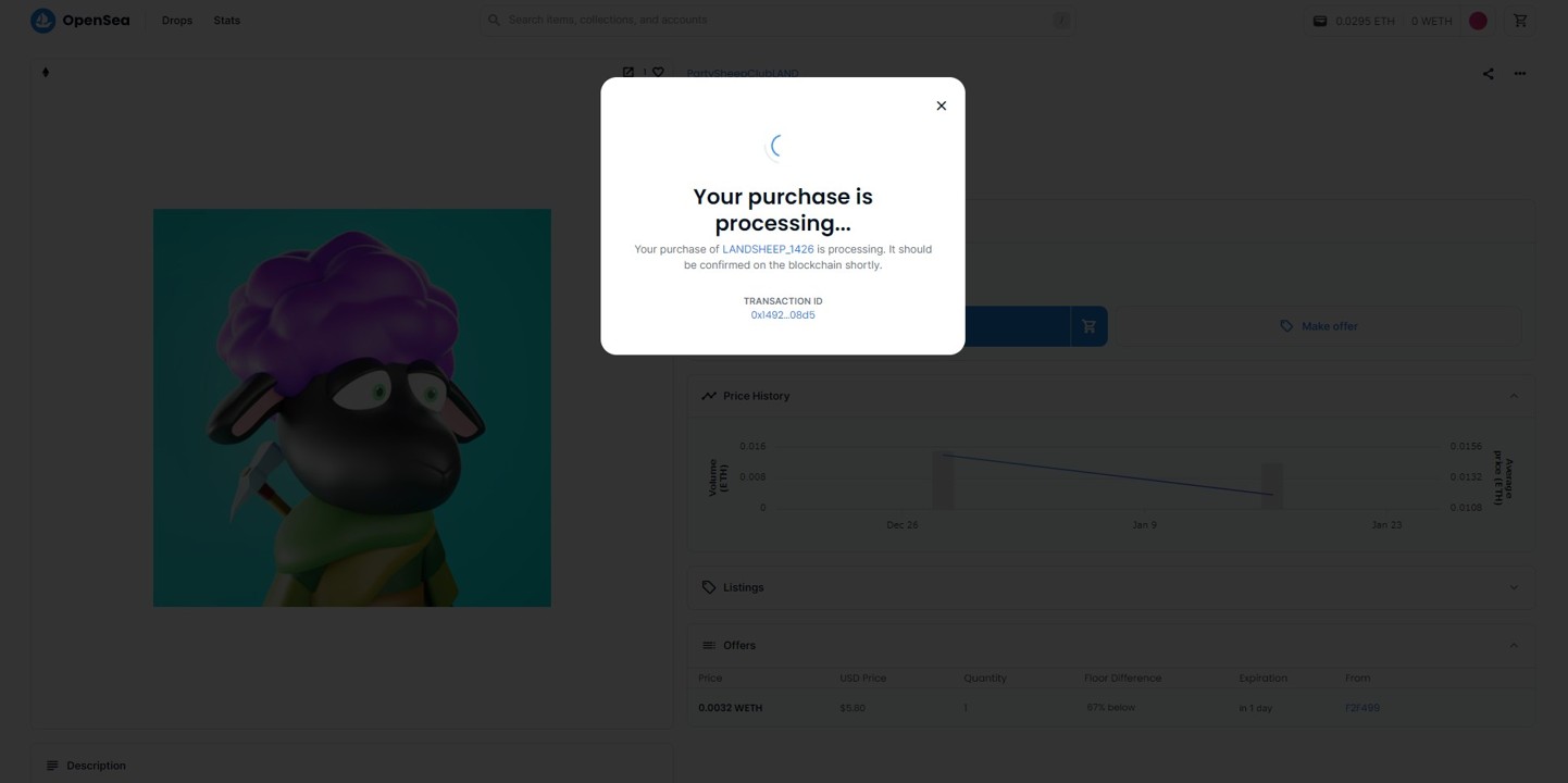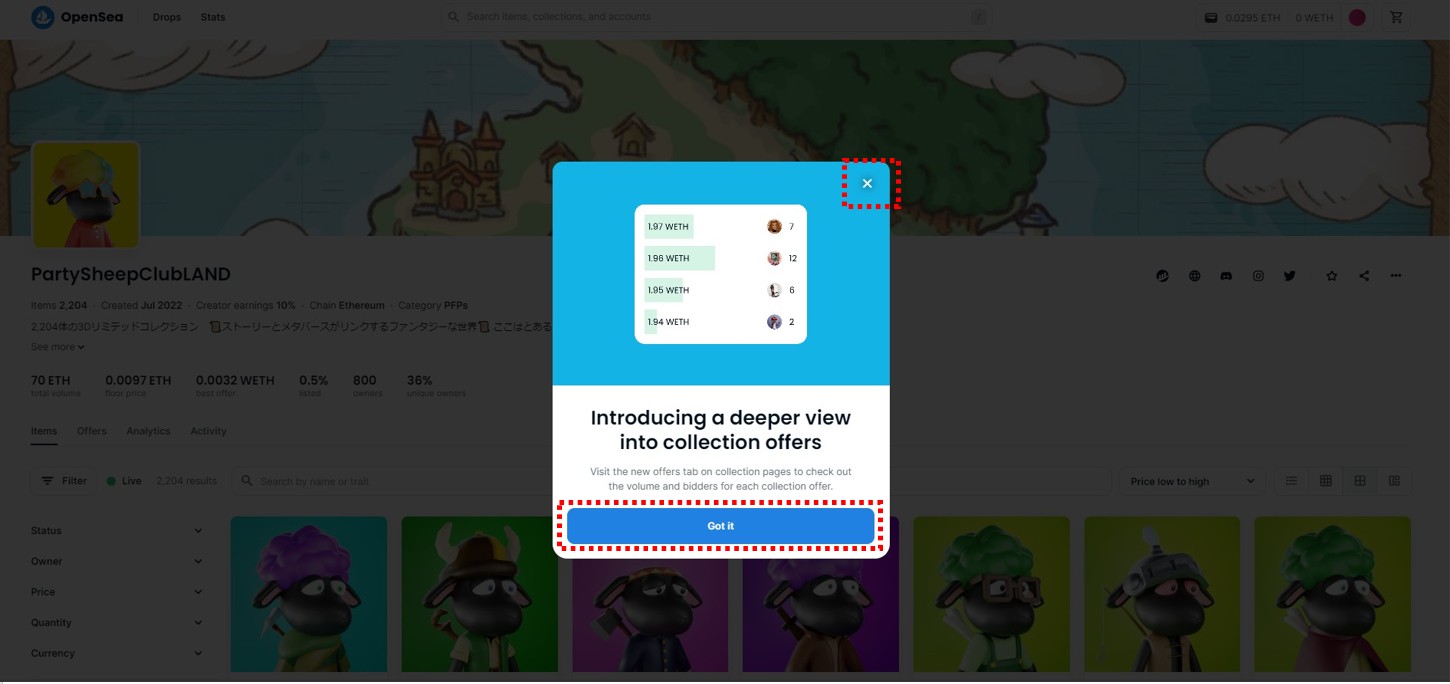 今回はおすすめNFTプロジェクトでも紹介しているPSCL(パーティー・シープ・クラブ・ランド)を購入してみました。