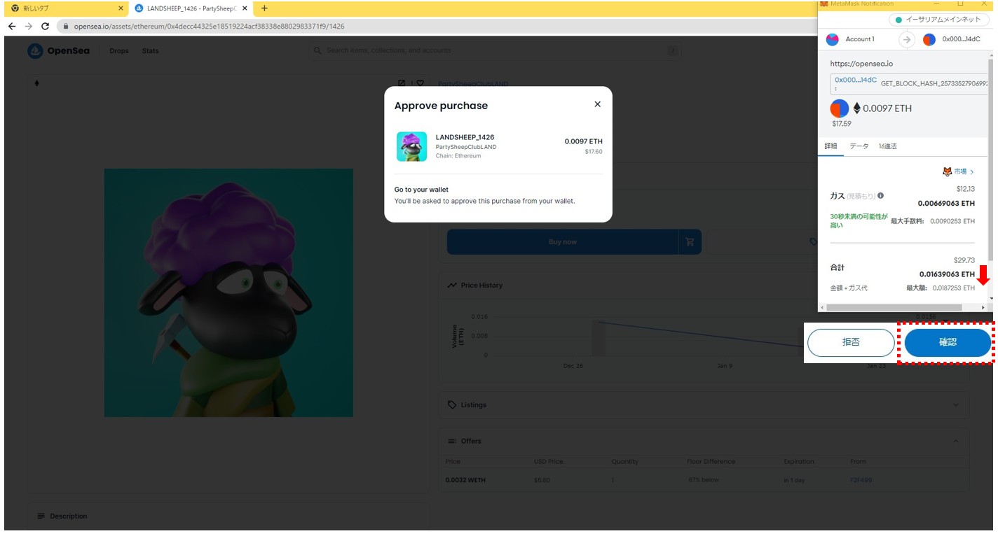 以上が、OpenSea(オープンシー)でのNFTの買い方になります。